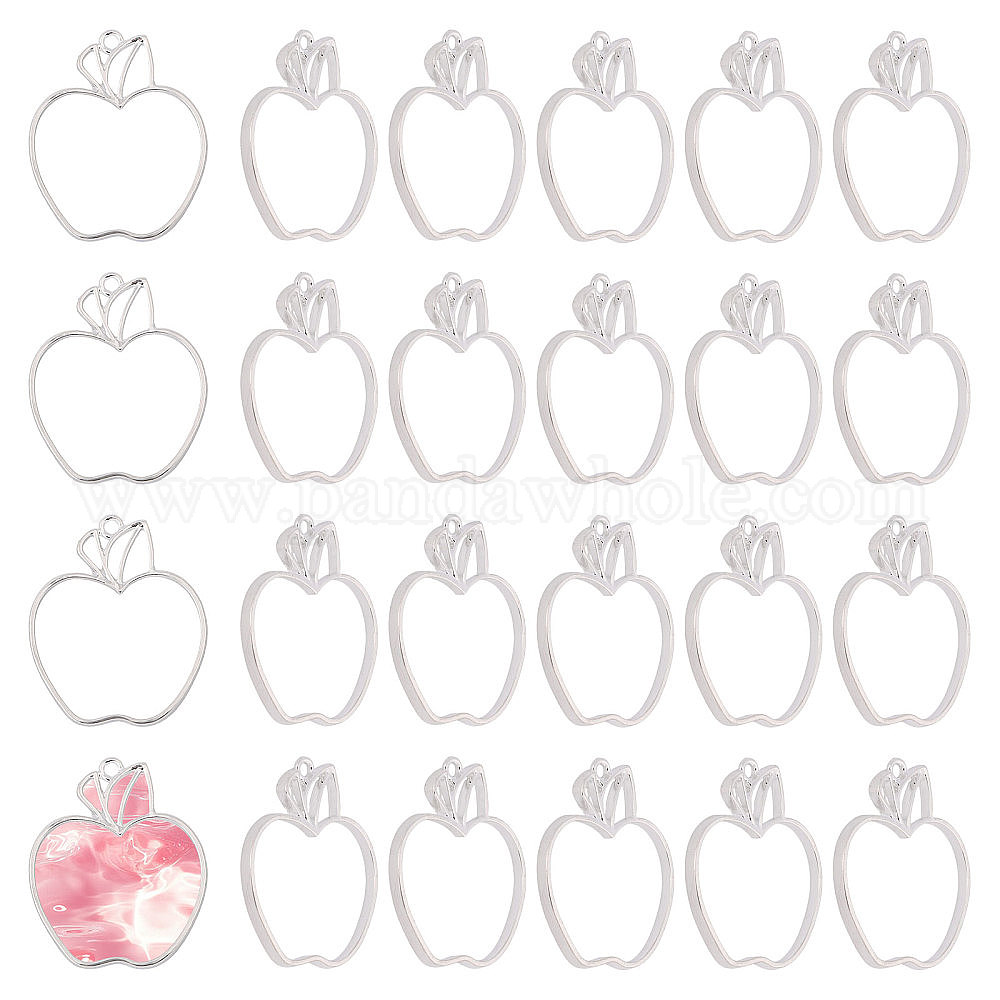 • Серебро 24 шт. подвеска из сплава с настройками кабошона, яблоко, серебряные, 35x29.5x2.5 мм, отверстие : 2.5 мм