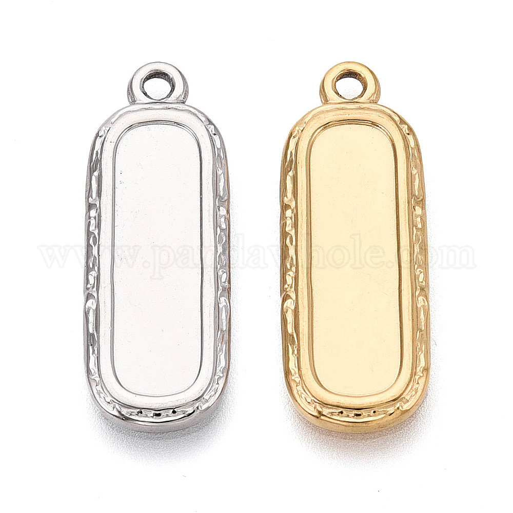 • Настоящее золото 18K 304 Настройки кабошон из нержавеющей стали кулон, прямоугольные, ионное покрытие (ip), реальный 18 k позолоченный, 28x10x2 мм, отверстие : 1.8 мм, лоток : 20.5x6 мм