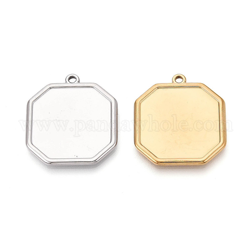 • Настоящее золото 18K 304 Настройки кабошон из нержавеющей стали кулон, многоугольник, ионное покрытие (ip), реальный 18 k позолоченный, 28x25.5x2 мм, отверстие : 1.6 мм, лоток : 22x22 мм