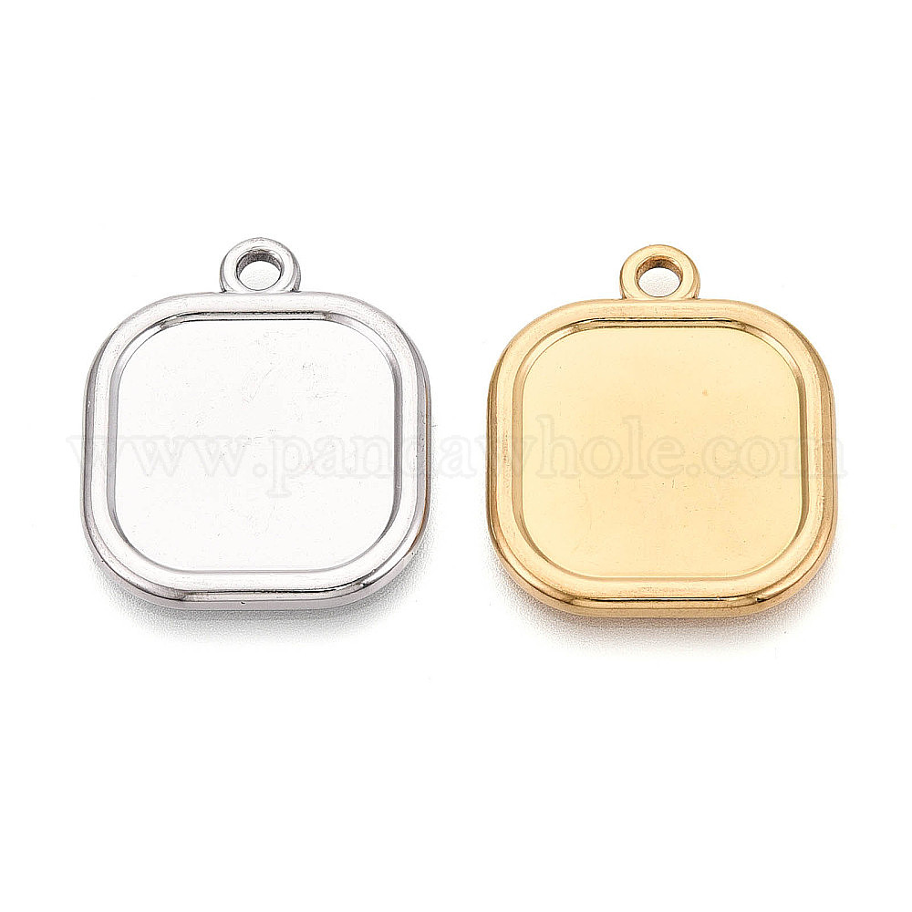 • Настоящее золото 18K 304 Настройки кабошон из нержавеющей стали кулон, квадратный, ионное покрытие (ip), реальный 18 k позолоченный, 30x25.5x2 мм, отверстие : 2.8 мм, лоток : 20x20 мм