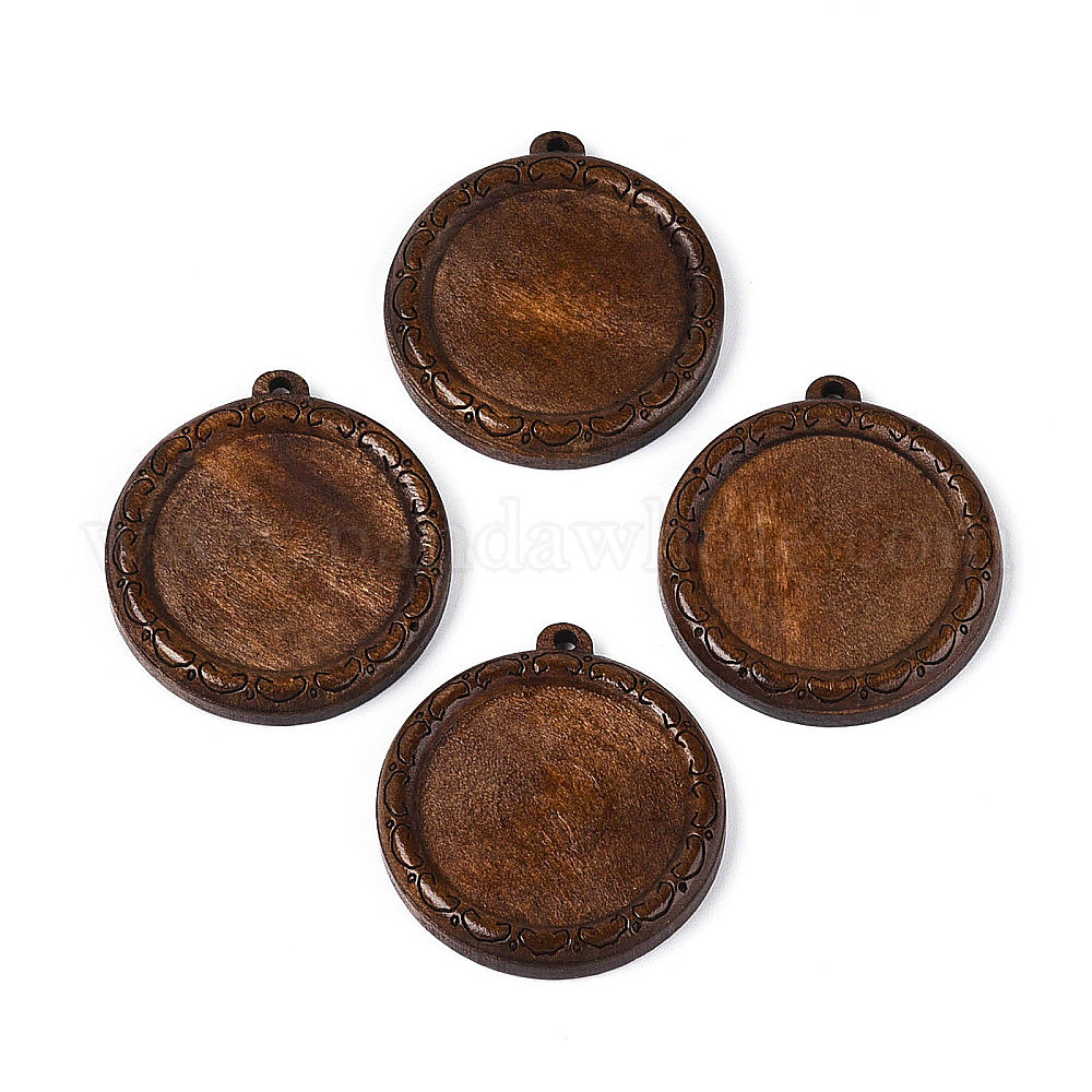 Оправы для кабошонов из резного дерева скима, плоско-круглые, окрашенные