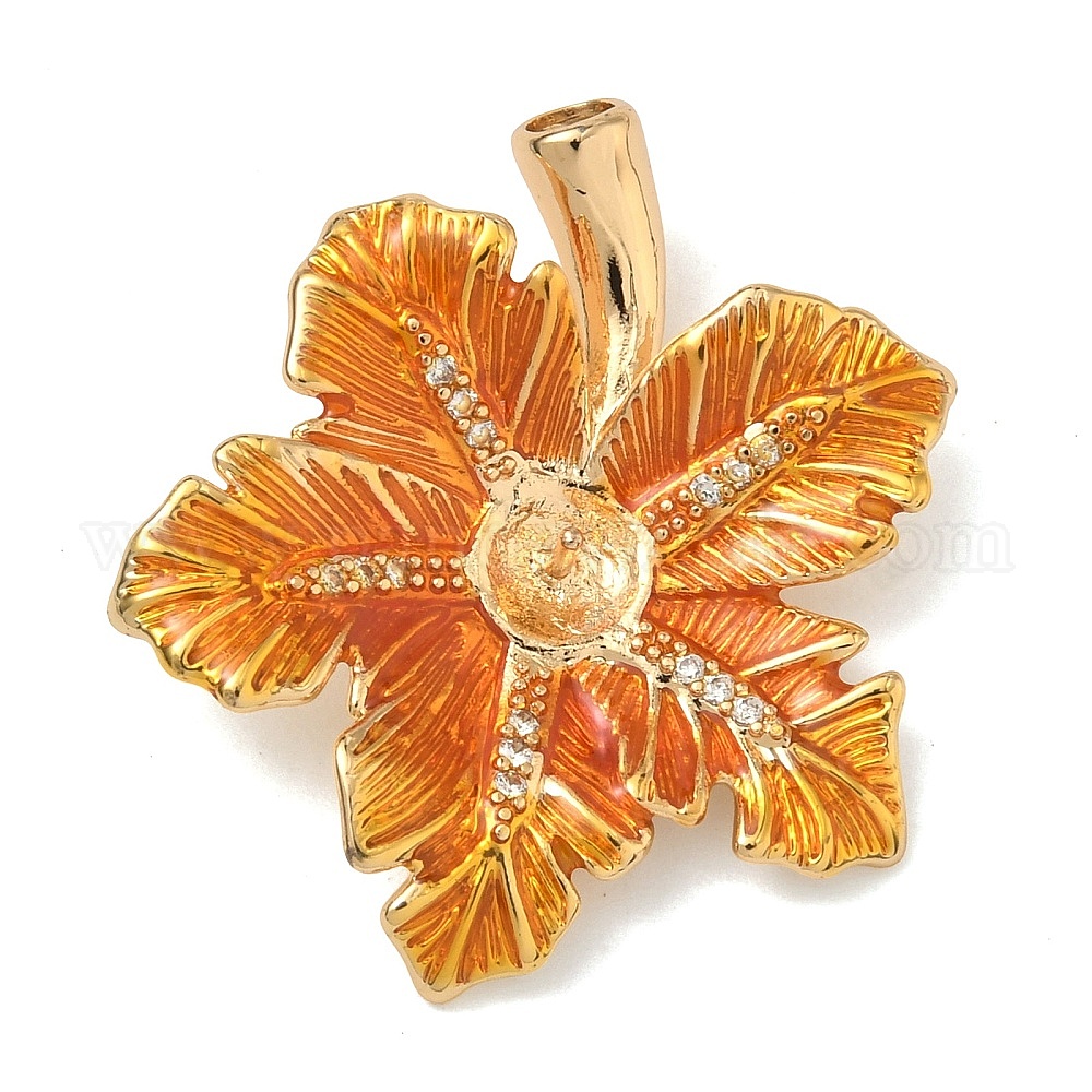 • Золотой Кулон из латуни, микропаве, прозрачный кубический цирконий, подвеска, кабошон, кленовый лист подвески, с эмалью, за половину пробурено бисера, золотые, 30.5x27x4 мм, отверстие : 5x2 мм, лоток : 5 мм