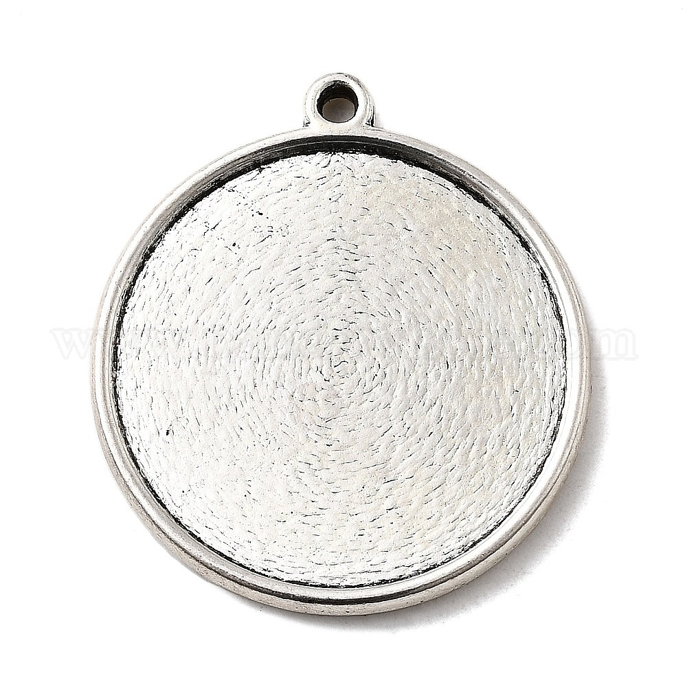 Тибетский стиль двусторонние настройки подвеска кабошон, чашки безель с краями, двухсторонний лоток, без свинца и без кадмия, 33x29x4 мм, отверстие: 2 мм, плоские круглые лоток: 26 мм