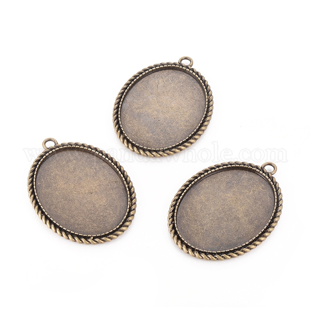 Тибетском стиле настройки сплав цинка кулон кабошон, без кадмия, без никеля и без свинца, плоский овал лоток: 40x30 мм, 51x37x2 мм, отверстие : 3 мм