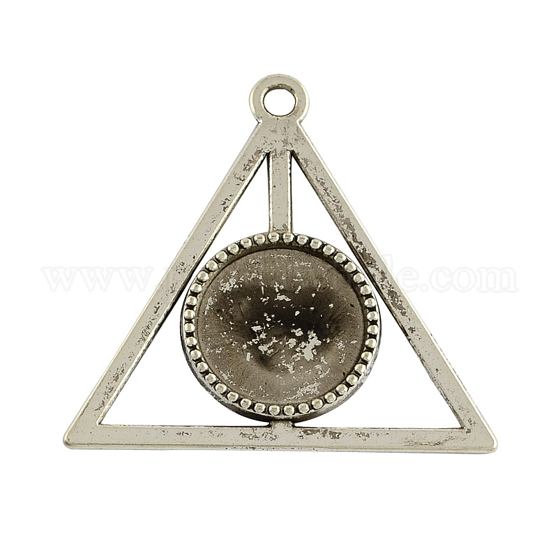 Треугольные кулоны тибетского стиля для размещения кабошонов, без кадмия и без свинца, плоско-круглый лоток : 16x16 мм , 39x41x2 мм, отверстие : 3 мм