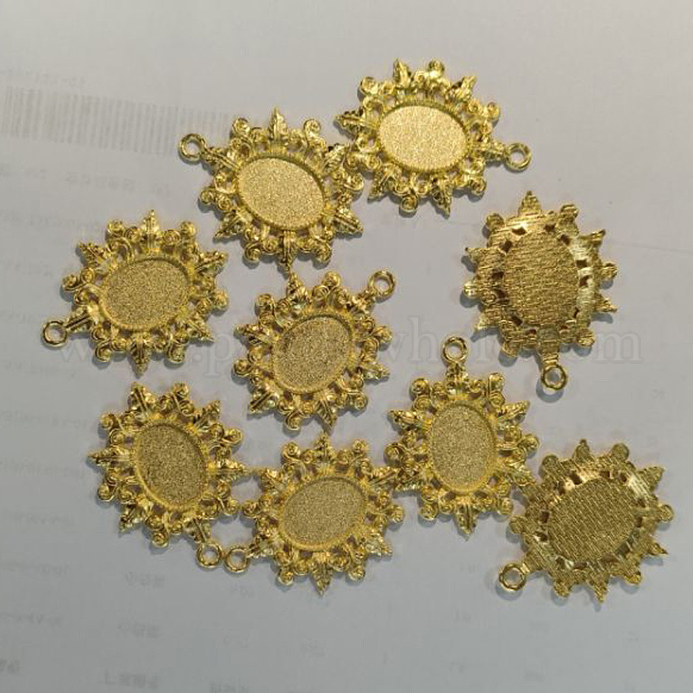 Старинные тибетском стиле сплава настройки ободок цветок кулон кабошон, без кадмия и без свинца, овальный поднос: 13x18 мм, 42x33x2 мм, отверстие: 3 мм, около 177 шт / кг (00C6ZM)