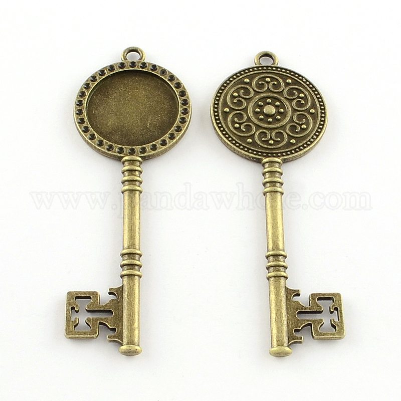 Настройки ключа сплава кулон горный хрусталь кабошон тибетский стиль, без свинца и без кадмия, лоток: 20 мм, подходит для 2 мм горный хрусталь, 75x25.5x3.5 мм, Отверстие : 3 мм , около 130 шт / 1000 г