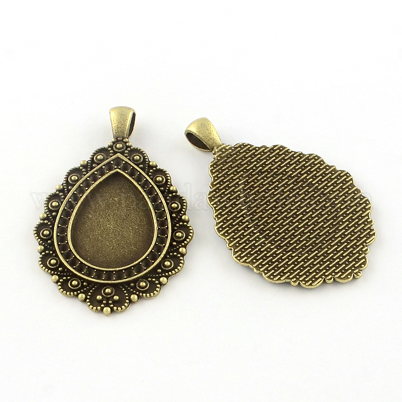 Слеза в тибетском стиле из сплава с большим кулоном, стразами и кабошоном, без свинца, лоток : 18x25 мм, 54.5x35x2 мм, Отверстие : 6x4 мм, около 100 шт / 1000 г , подходят для стразов 1.5 мм