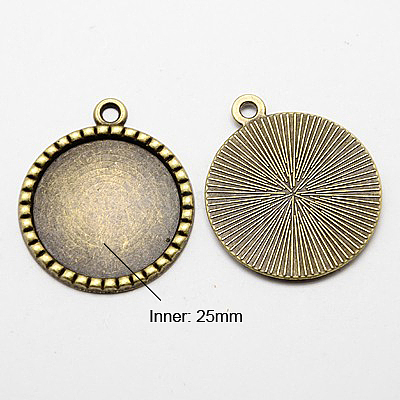 • Серебро Сеттинги для кулона ( кабошон ), тибетский стиль, без кадмия, без никеля и без свинца, плоско-круглые, серебряный цвет гальваническим, лоток : 25 мм, 35x30x2 мм, отверстие : 3 мм