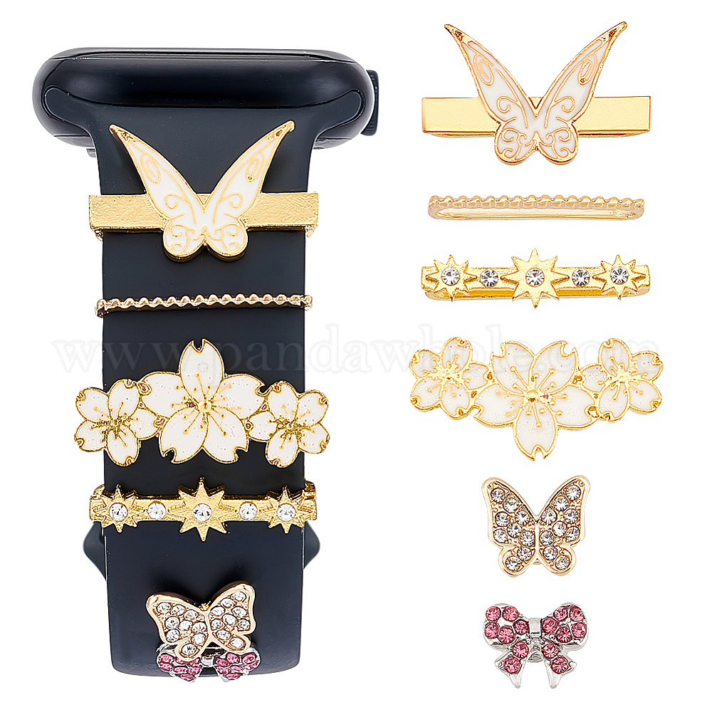 6 шт 6 стиль цинковый сплав со стразами петли для часов аксессуары, заклепки для ремешка для часов в виде бабочки и подвески для ремешка для часов в виде цветка