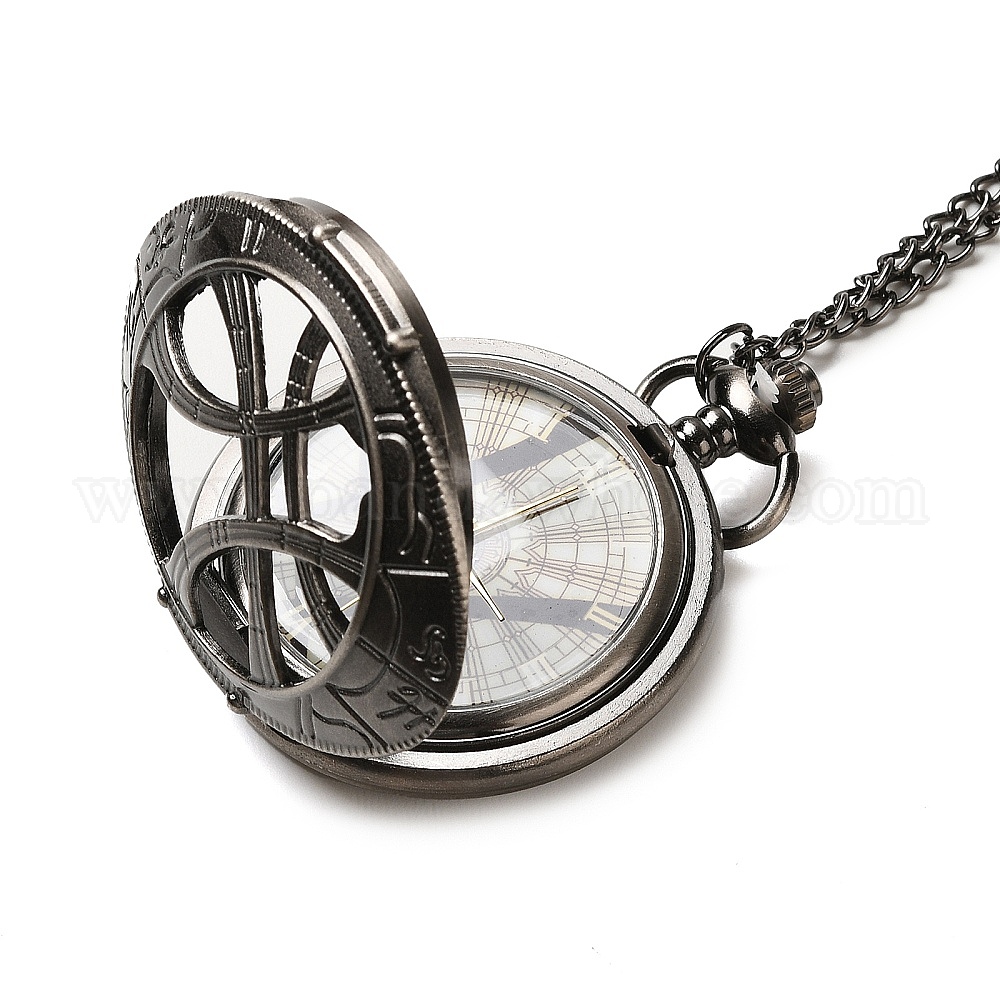 Колье с подвеской из сплава стекла и карманом, электронные часы, железные цепочки и карабин-лобстеры , плоско-круглые
