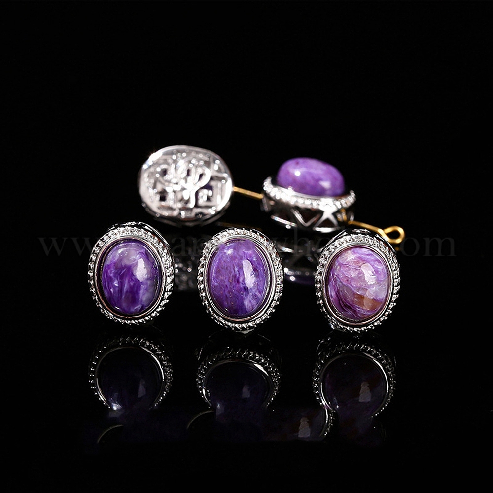 Натуральные шарики из чароита, сплав овальные бусины, платина