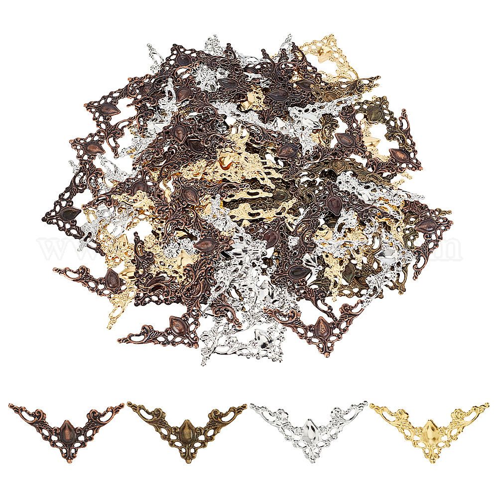 120шт 4 цвета железные филигранные столярные изделия, полый, треугольные