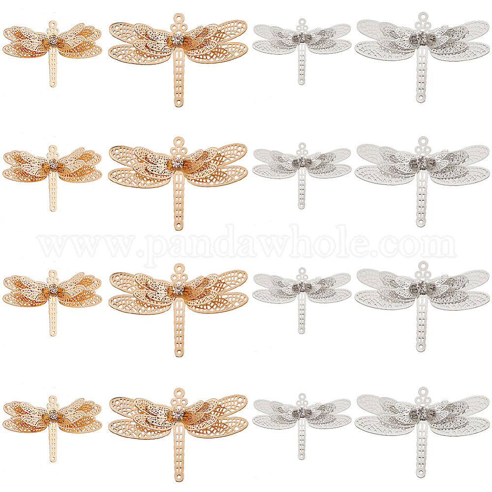 16шт 4 стиль латунные филигранные соединительные звенья наборы, с кристально горный хрусталь, стрекоза