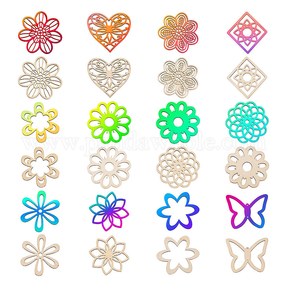 24 шт. 12 стили необработанное натуральное топольное дерево филигранные столярные соединения, вырезанные лазером деревянные формы, цветок/сердце/бабочка/ромб