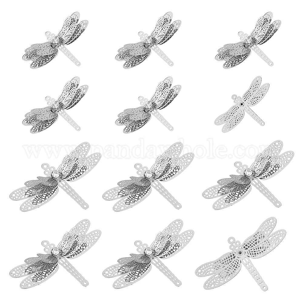 12шт. 2 стили латунные филигранные соединительные элементы звенья, с кристально горный хрусталь, стрекоза