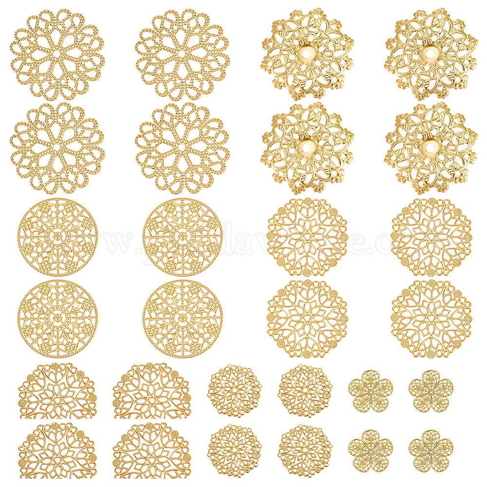 42 шт. 7 стили железные и латунные филигранные соединения, цветок ссылки, гравированные металлические украшения, стойки покрытие