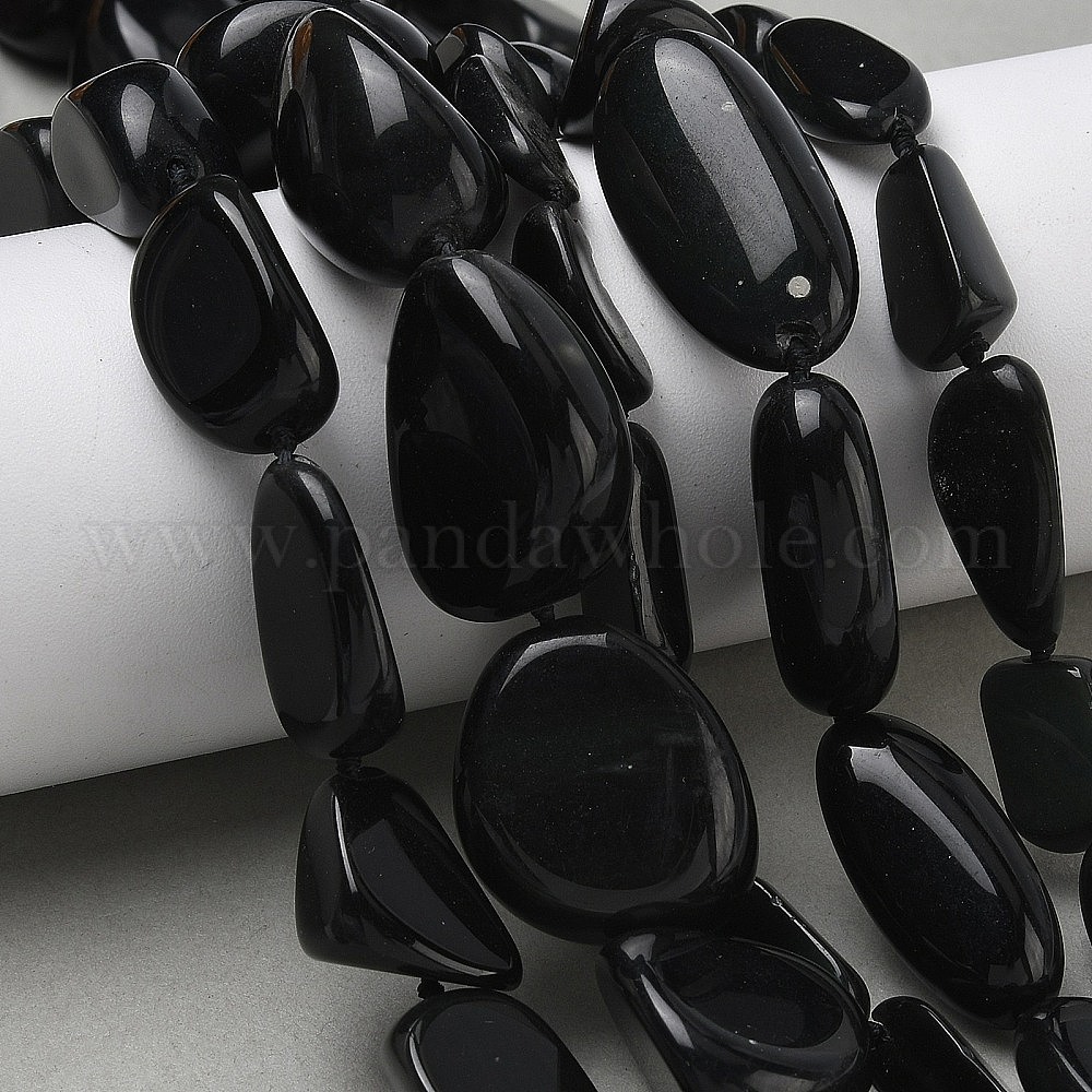 • Черный Камень Натуральный черный камень бисер нитей, самородки, упавший камень, 16~26x9~21x6~15 мм, отверстие : 1~1.2 мм, около 17~22 шт / нитка, 16.34~16.54'' (41.5~42 см)