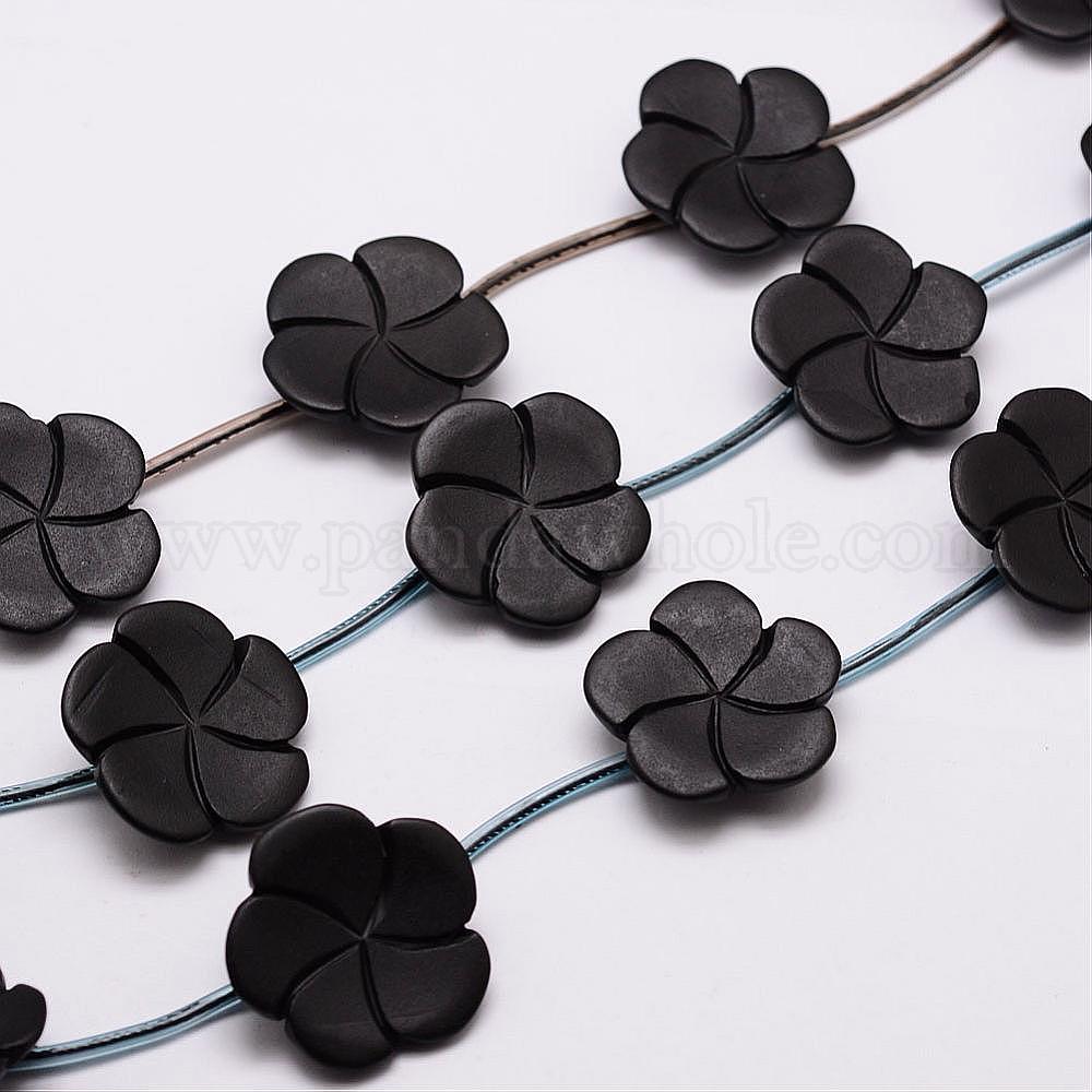 Природные пряди черный камень шарик, цветок, 25x6 мм, отверстие : 1 мм, около 10 шт / нитка, 16.1 дюйм