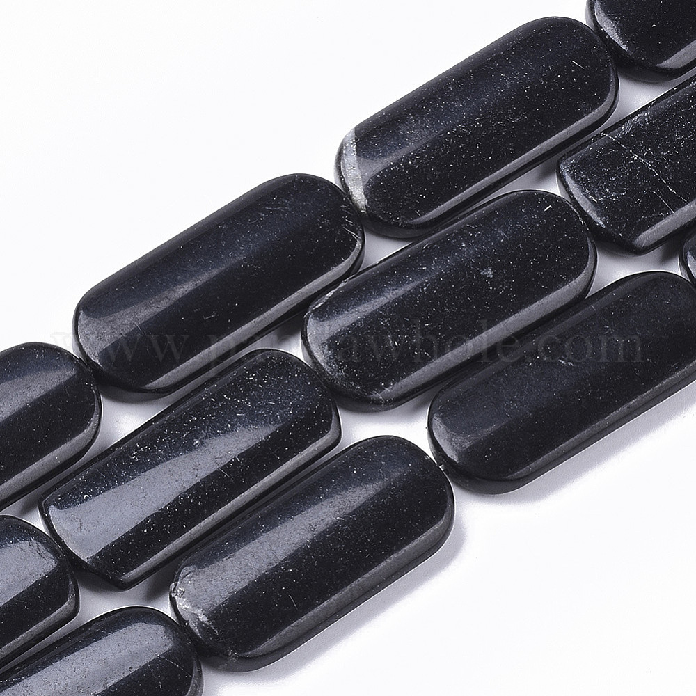 • Черный Камень Натуральный черный камень бисер нитей, овальные, 39~40x18x6 мм, отверстие : 1.5 мм, около 10 шт / нитка, 15.75 дюйм (40 см)