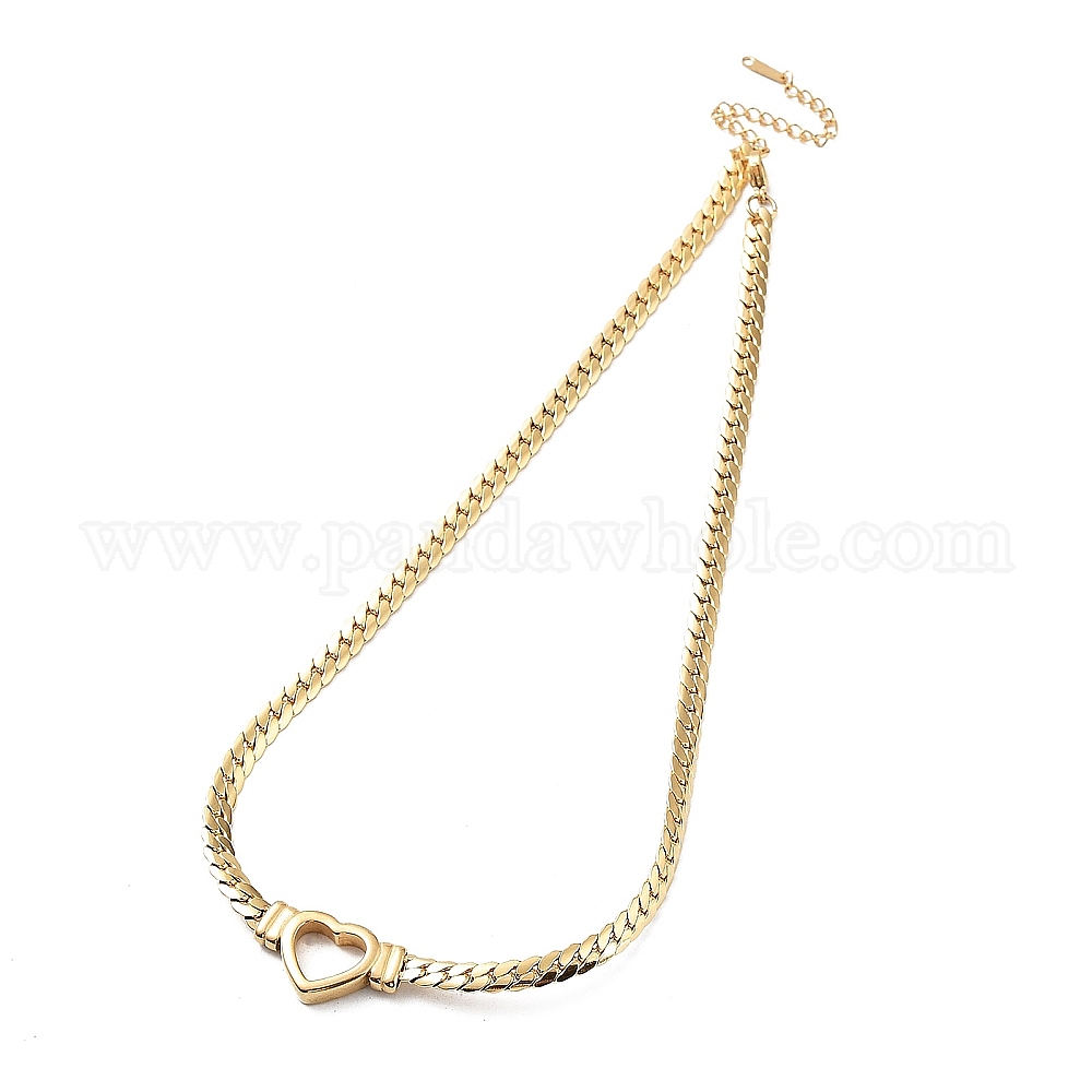 Массивное ожерелье-цепочка с плоскими кубинскими звеньями, 304 ожерелья с полыми сердцами из нержавеющей стали (02S38D)