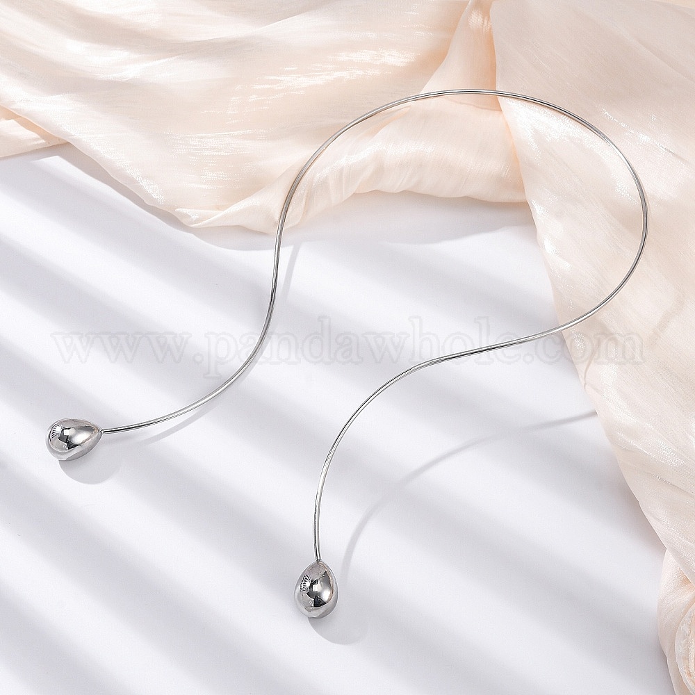 • Нержавеющая Сталь Цвет 304 Женские ожерелья-чокеры из нержавеющей стали в форме капли, цвет нержавеющей стали, внутренний диаметр: 5.41 дюйм (13.75 см)