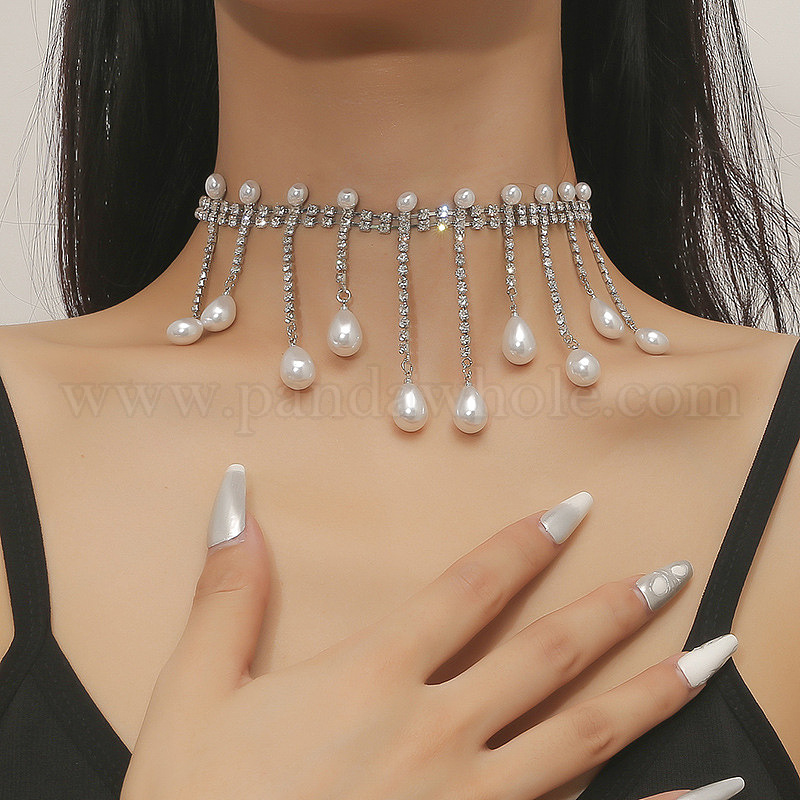Ожерелья-чокеры из сплава и латуни с кристаллами, стразами и искусственным жемчугом, круглые подвески для женщин
