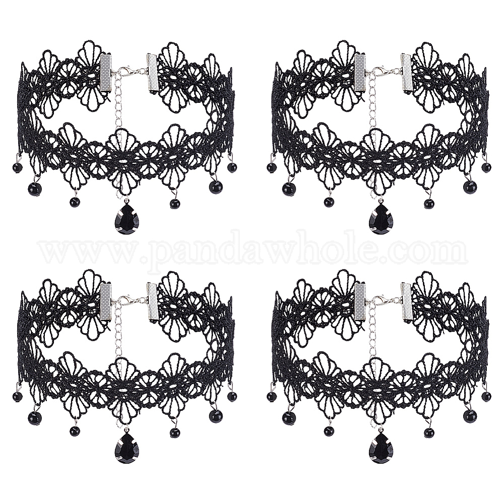 4 шт. ожерелья-чокеры из кружева с кисточками и цветами из смолы в готическом стиле