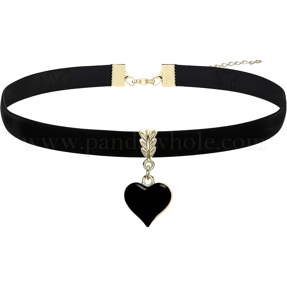 Женские ожерелья-чокеры из черного бархата с подвеской в виде сердца из сплава и эмали, золотые