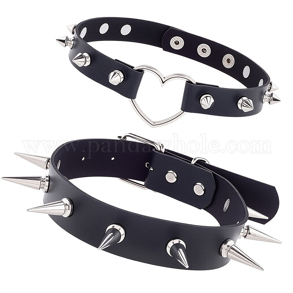 2шт. 2 стили регулируемые готические ожерелья-чокеры из искусственной кожи с сердечком, шипами и заклепками из сплава для женщин, платина
