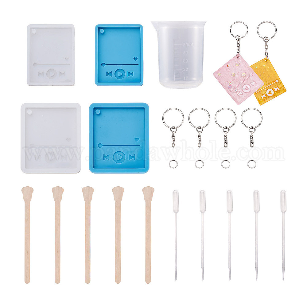 40шт прямоугольник с mp3 плеером силиконовые формы своими руками, с железными разрезными брелоками, деревянные палочки для вощения, эфирные масла пипетки слезинка, мерный стаканчик пластиковые инструменты, Кольца прыжок (029NBY)