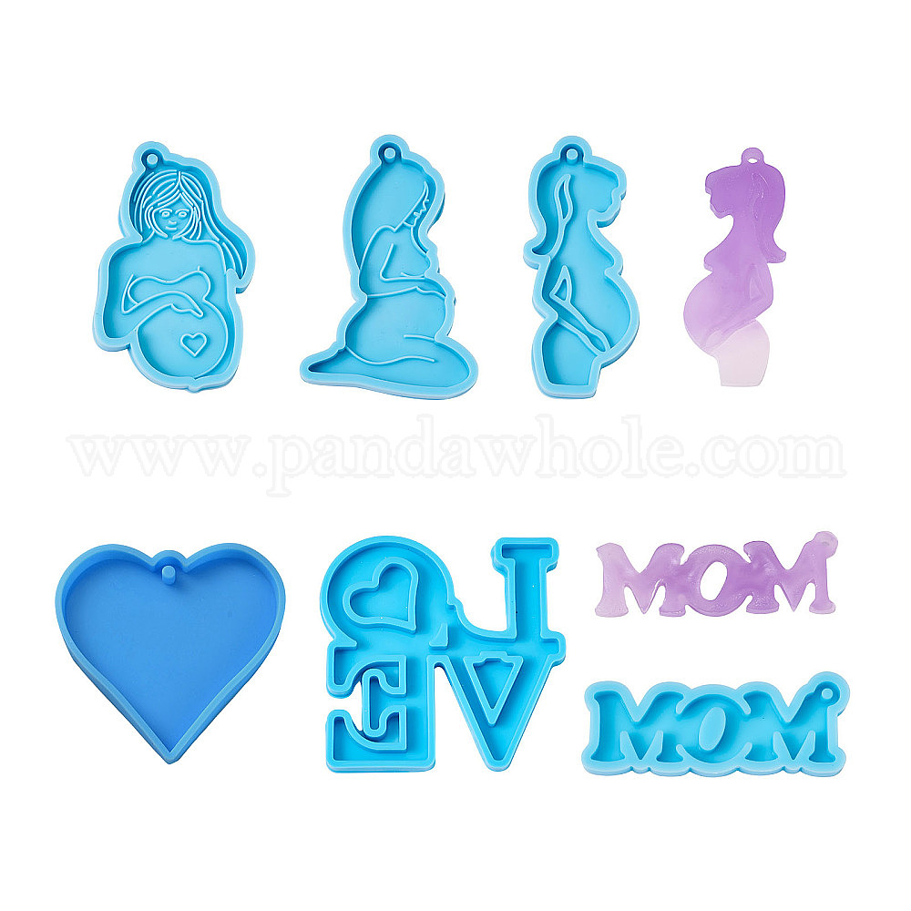 6шт 6 стиль День матери тематика самодельные подвески силиконовые формы, подвесные формы для литья из смолы, для уф-смолы, изготовление ювелирных изделий из эпоксидной смолы, беременная женщина и слово и сердце
