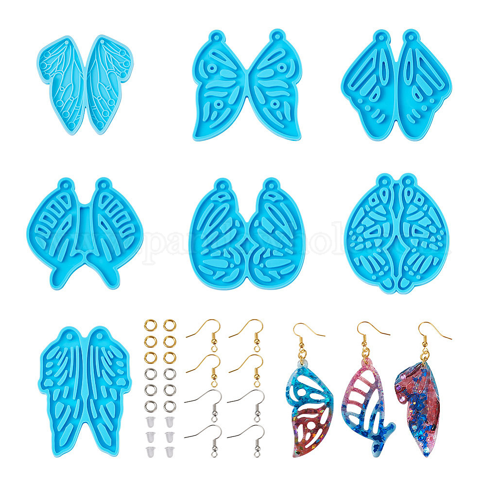 7шт 7 стиль бабочка подвеска своими руками силиконовые формы, для серьги решений, из латуни 120шт. открытые переходные кольца и 60шт. крючки для серег, 100 гайки ушные пластиковые