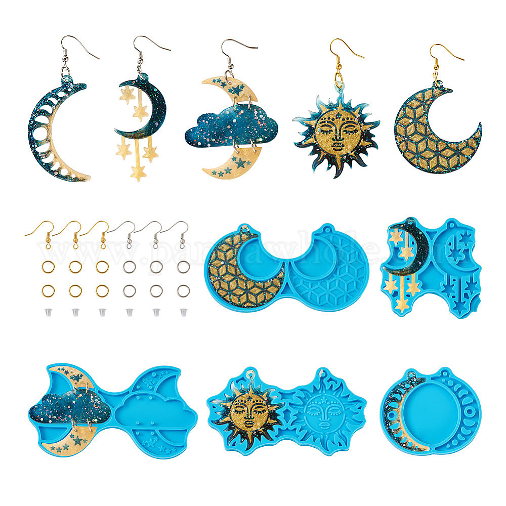 5шт 5 стиль солнце и луна и облако и звезда кулон силиконовая форма, с медными крючками и кольцами, пластиковая ушная гайка, для изготовления серег