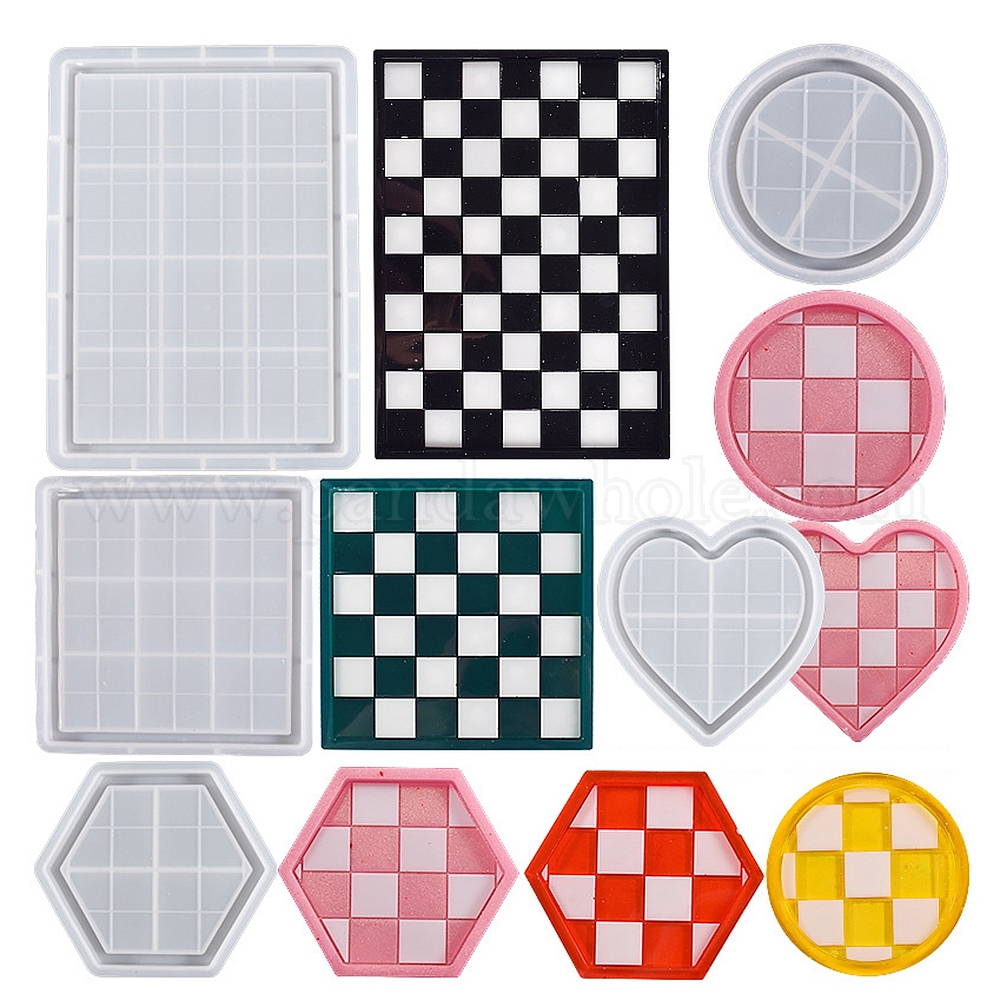 Силиконовые формы для подставок своими руками, формы для литья смолы, для уф-смолы, изготовление ювелирных изделий из эпоксидной смолы, шотландка шаблон, сердце/плоский круглый/шестиугольник/квадрат/прямоугольник