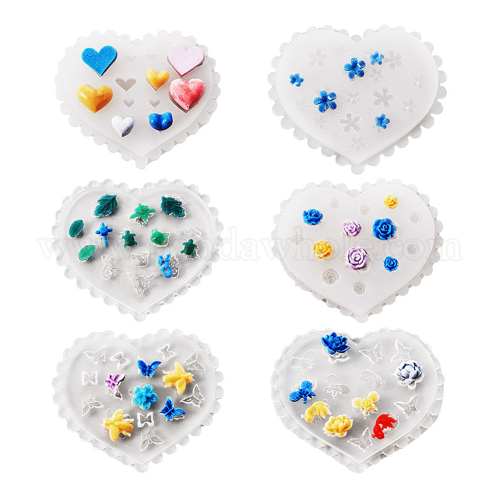 6шт 6 стили DIY цветы и животные и форма сердца дизайн ногтей украшения силиконовые формы, формы для литья смолы, для изготовления уф-смолы и эпоксидной смолы