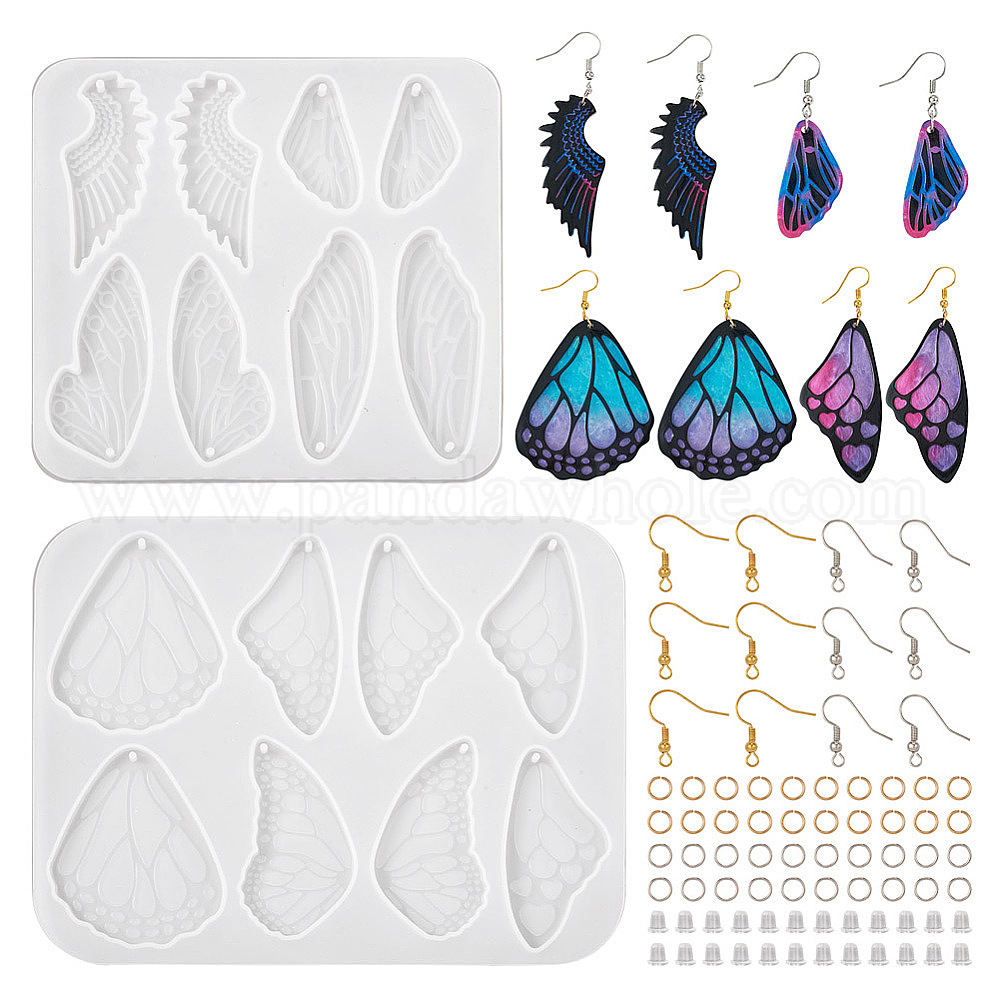 2 шт. 2 силиконовые формы для сережек-подвесок в форме крыльев, формы для литья смолы, с 40 шт. латунные крючки для серег, 60 Железные переходные кольца и 50 Пластиковые гайки для ушей.