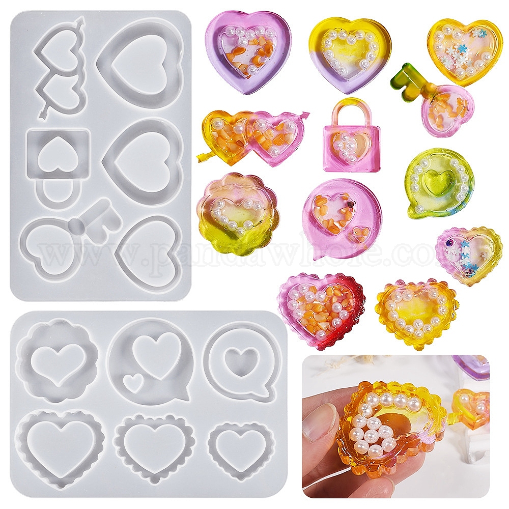 • Белый Силиконовая форма в форме сердца «зыбучий песок» своими руками, формы для встряхивания, формы для литья смолы, для уф-смолы, изготовление изделий из эпоксидной смолы, белые, 199x99x9 мм, внутренний диаметр: 20~54x35~50 мм