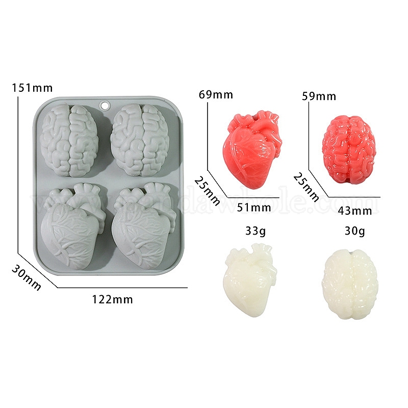 • Гейнсборо Силиконовые формы для помадки своими руками, для изготовления канке, для Хэллоуина, сердце и мозг, светло-серые, 151x122x30 мм