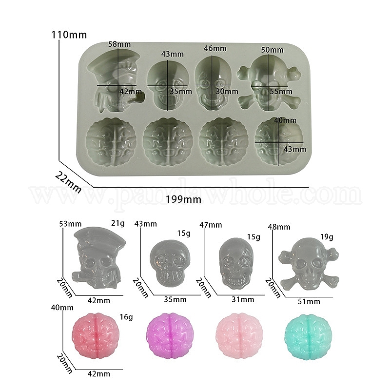 • Гейнсборо Diy дисплей силиконовые формы, формы для литья смолы, череп, для Хэллоуина, светло-серые, 199x110x22 мм