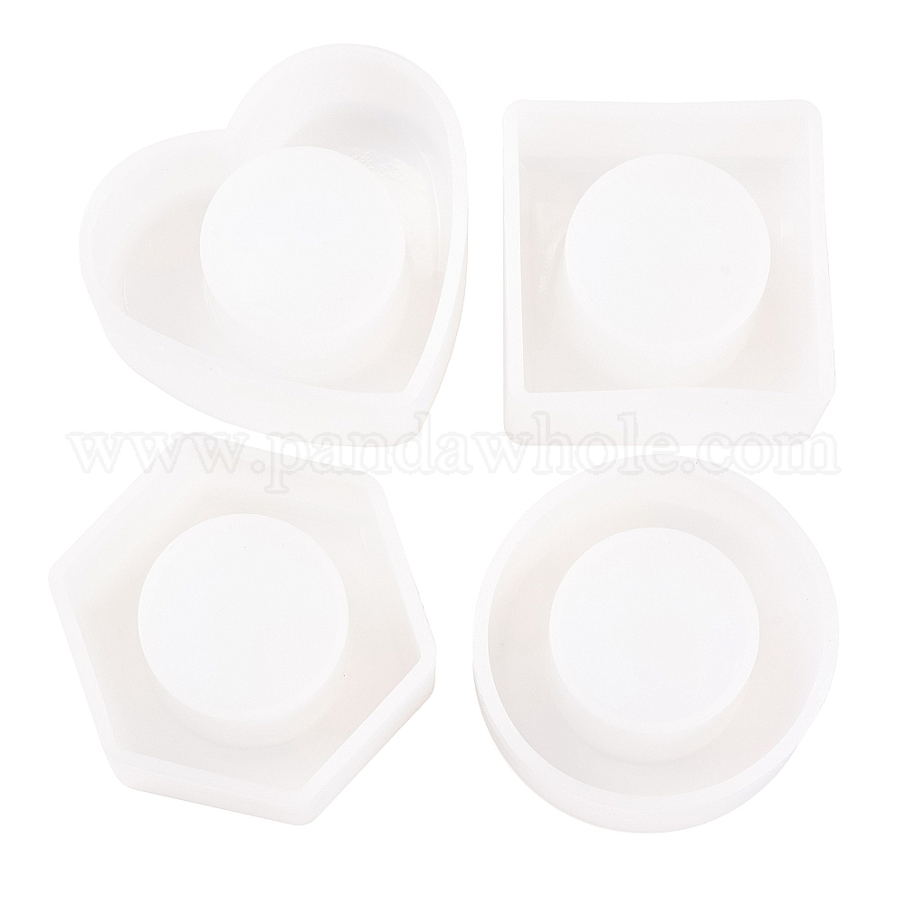 • Белый Минималистичные держатели для салфеток, кольца, формы из смолы, Круглые, квадратные, сердечные и шестиугольные пряжки для салфеток, форма для литья из смолы, силиконовые формы для коробок своими руками, белые, 59~62x59~68x28~29 мм, отверстие : 31 мм, 4 шт / комплект
