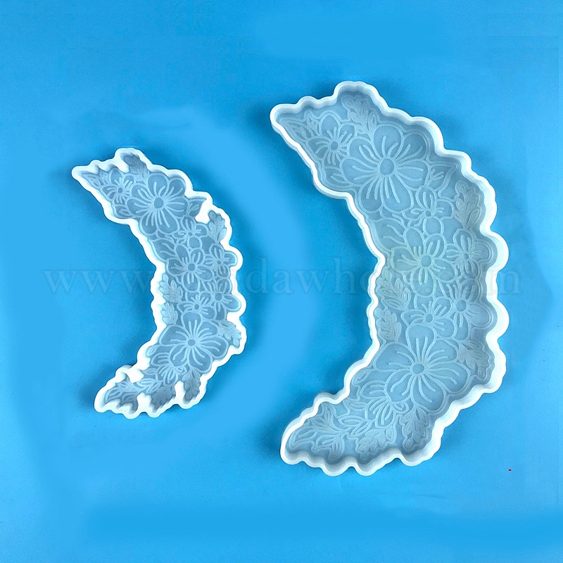 • Белый Подставки под стаканы из пищевого силикона своими руками, формы для литья смолы, луна с цветком, белые, 130x73 мм