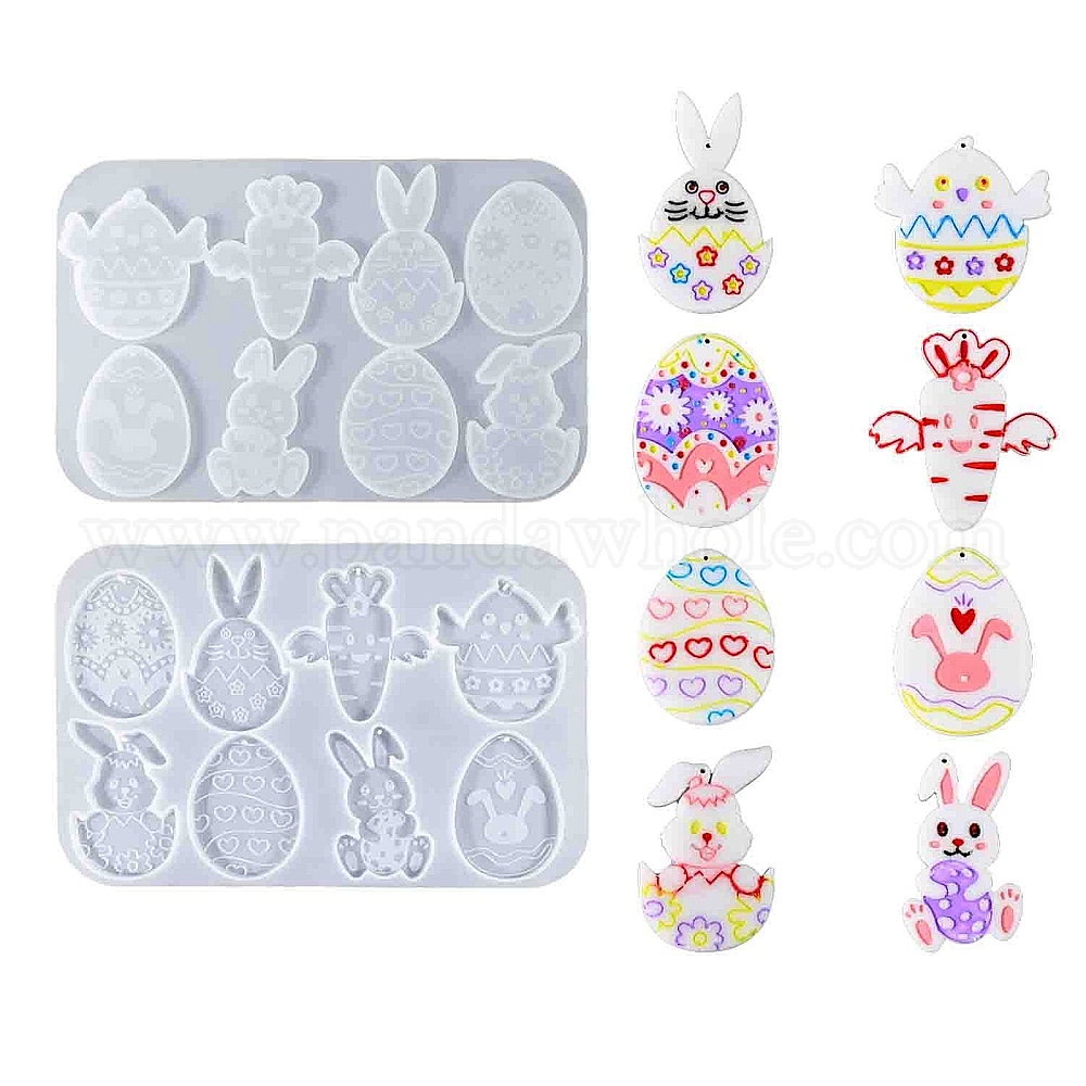 • Белый DIY силиконовые формы кулон, формы для литья смолы, для уф-смолы, изготовление ювелирных изделий из эпоксидной смолы, подвески в виде пасхального яйца и кролика, белые, 170x263x5.5 мм, отверстие : 2 мм, внутренний диаметр: 71~86x40~73 мм