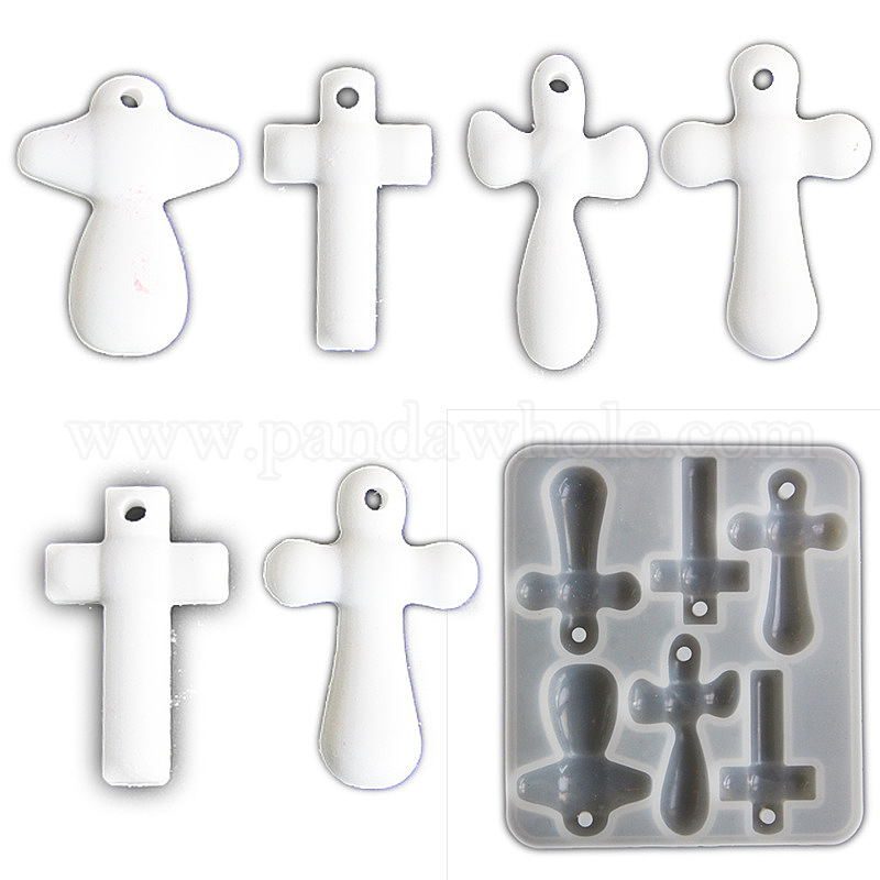 • Белый DIY силиконовые формы кулон, формы для литья смолы, крестик, белые, 118x106x10 мм, отверстие : 4 мм
