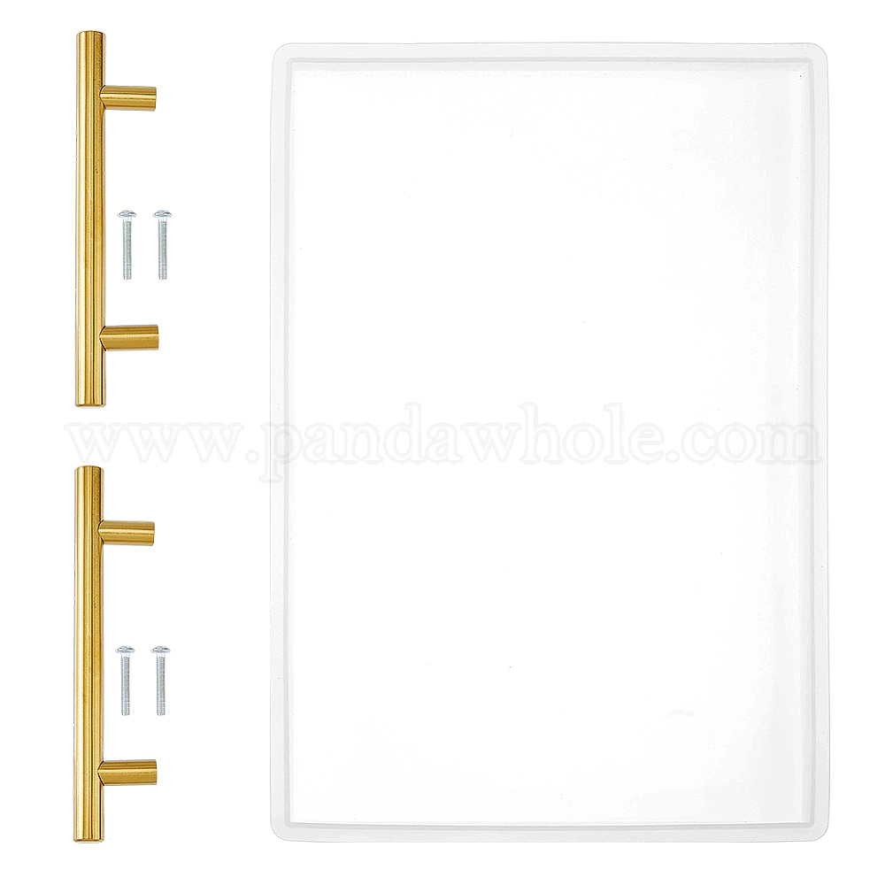 Прямоугольный лоток для фруктов силиконовые формы, для уф-смолы, изготовление изделий из эпоксидной смолы, с 2шт. ручками для выдвижного ящика из нержавеющей стали, золотые