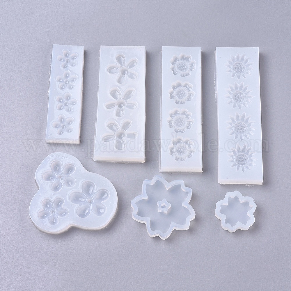 • Белый Силиконовые формы, формы для литья смолы, для уф-смолы, изготовление ювелирных изделий из эпоксидной смолы, цветок, белые, 1 шт / стиль, 7 шт / комплект