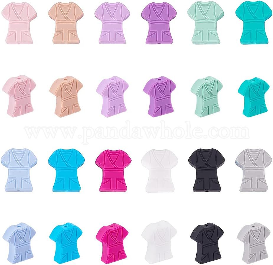 • (52) Непрозрачная лаванда 24 шт. 12 цветные экологически чистые силиконовые шарики для пищевых продуктов, женская одежда медсестры, разноцветные, 25x22x8 мм, отверстие : 2.5 мм, 2 шт / цвет