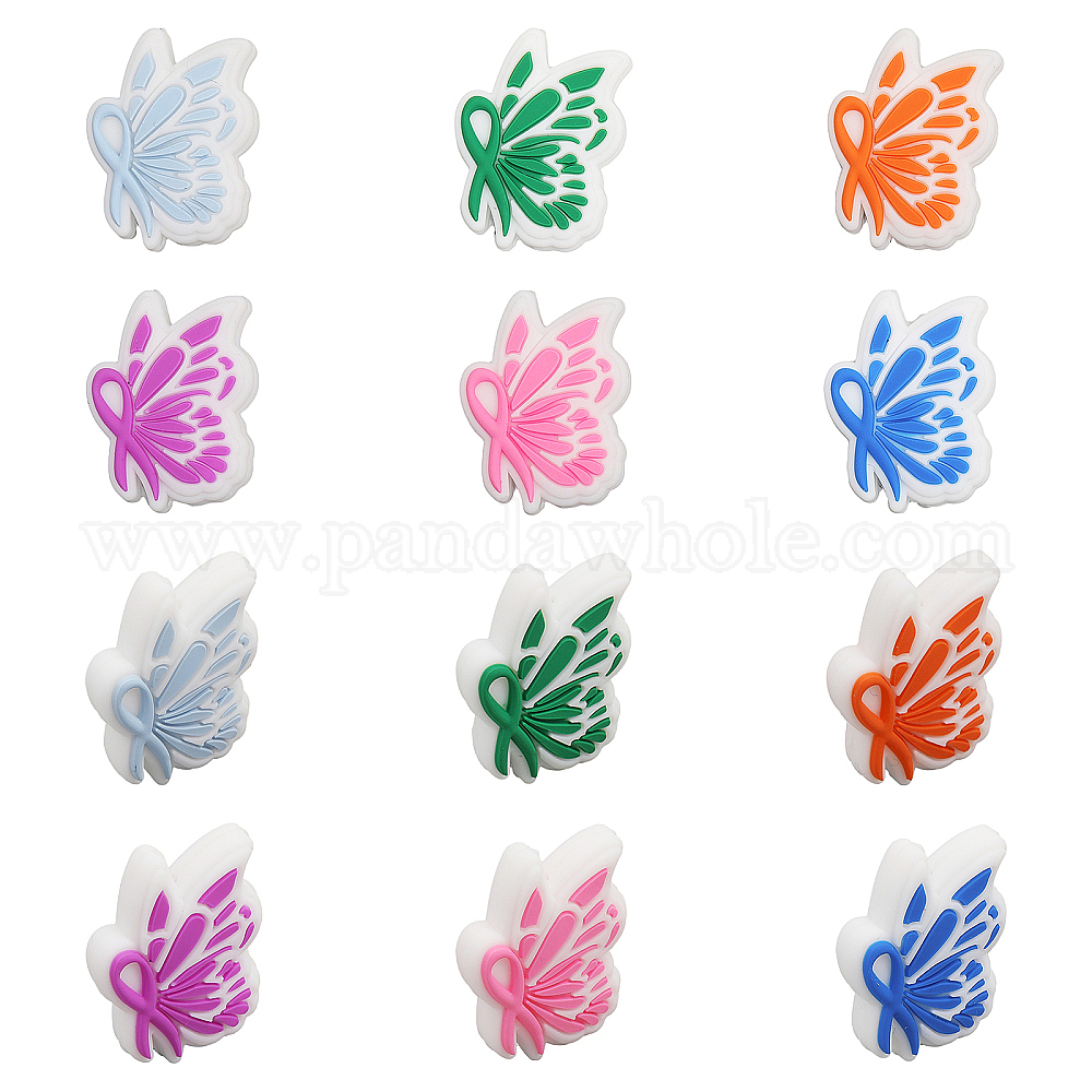 силиконовые бусины в виде бабочек: около 30 мм в длину, шириной 23 мм , толщиной 9 мм , отверстие : 2 мм, 6 цветов, 2 шт / цвет, 12 шт;