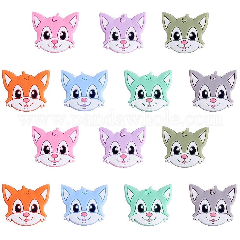 14 шт 7 стили кошачья голова силиконовые фокусные бусины