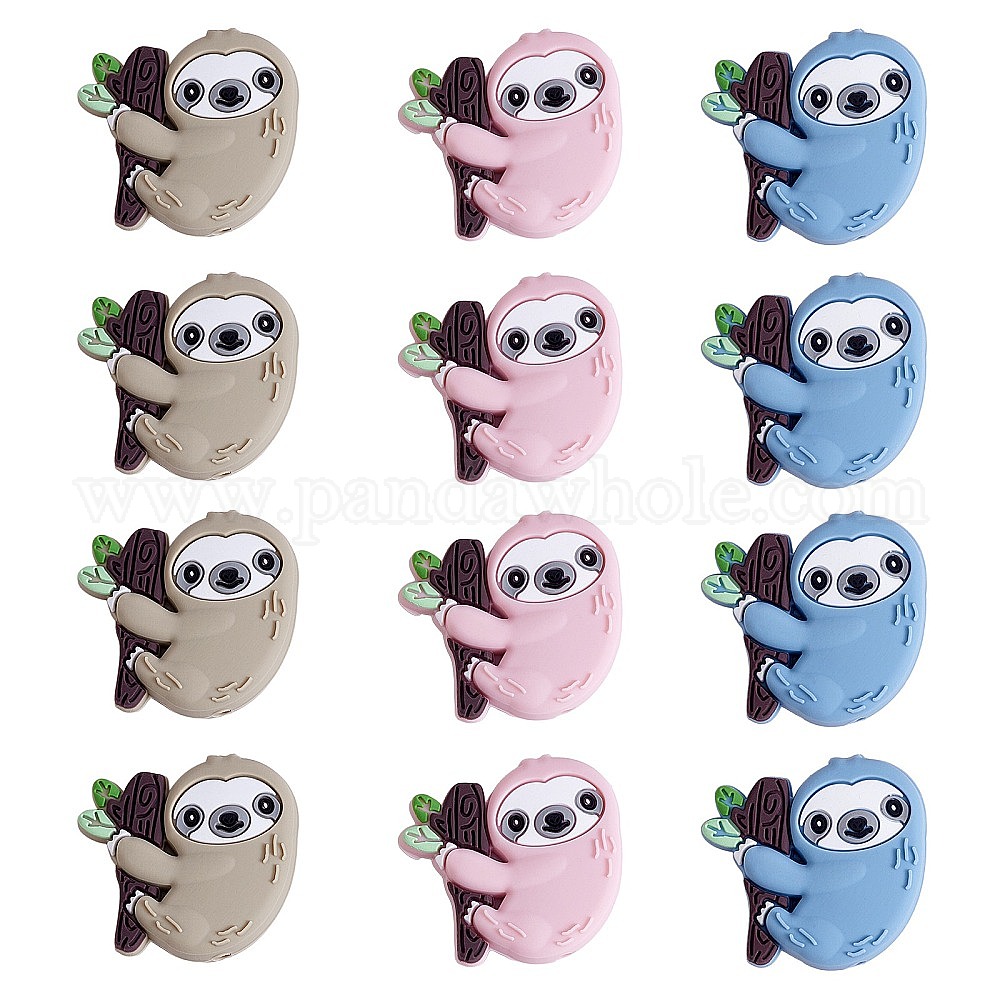 12шт 3 цвета силиконовые фокусные бусины, леность (02GR75)